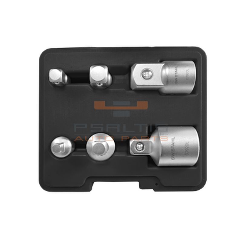 Contains all sizes between 6.3 mm (1/4″) and 20 mm (3/4″) as drive and output